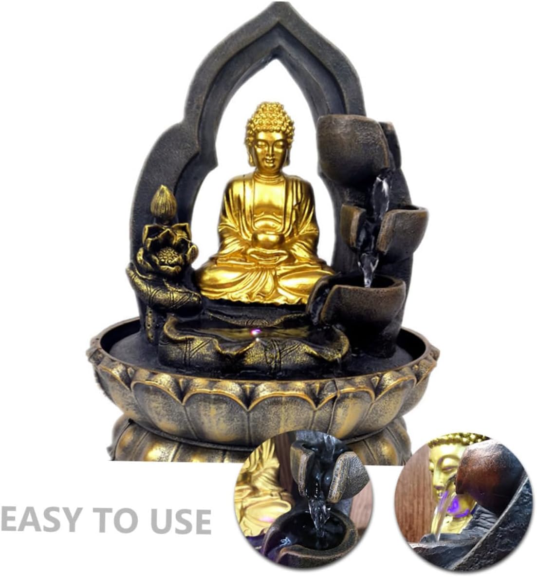 Package Include 1 x artware Features - Voltage: AC110V mini statue -Power supply:US standard 110v garden buddha fountain -Color:Golden tabletop sculpture -Material:Resin indoor statue -Size:28.00X21.00X21.00cm/11.00X8.25X8.25in resin adornment -The simple and delicate Buddha shape ornament comes with the compact size, which is space-saving on the desktop buddha adornment -Crafted with resin, this fountain is exceptionally durable and built to last, ensuring that you can enjoy its beauty and tranquility for years to come office decor -The versatile design of this tabletop fountain makes it suitable for any room in your home, allowing you to add a touch of chinese-inspired decor wherever you choose small fountain -Experience the soothing flow of water as it down the fountain, creating a peaceful ambiance that will help you indoor decor -Immerse yourself in of a chinese-inspired resin crafted tabletop fountain, designed to bring a sense of calm and serenity to any room resin buddha tabletop ornamentGoods Descriptionsmall office waterfall fountain Elevate your living space with the Desktop Fountain featuring a Buddha Statue.garden fountain Crafted with precision using resin, this fountain is not only visually appealing but also durable and .water fountain Note:This item comes with US 110V plug, please confirm the voltage of your area before purchasing.indoor decor This piece of decor combines Chinese aesthetics with the soothing sound of flowing water.buddha statue The tabletop design makes it a versatile addition to any room, whether it's your living room, bedroom, or office