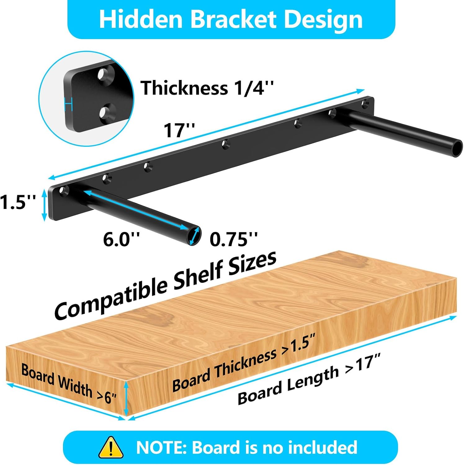 Floating Shelves Brackets Made of high quality steal material, sturdy and sturdy. These floating mantel bracket supports offer a strong bearing force, can hold upwards of 150+lbs. Easy Installation Our floating shelf brackets will always be square. You can count on the precision uniformity of our Heavy Duty Shelves Bracket to ensure that all of you commercial or home improvement projects run smoothly. Just drill the holes, recess the shelf, and slide them on. Hidden Shelf Brackets multiple Places Suitable for many places, such as Kitchen Shelving, Floating Mantles, Bathroom & Laundry Storage, Floating Bookshelves, Heavy Duty Garage Shelving.