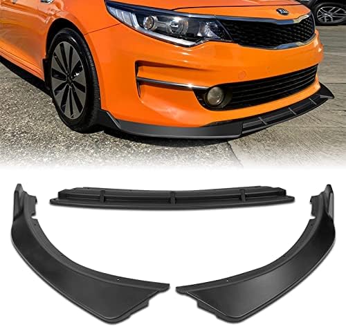 Fit For:💡 Compatible with 2016 2017 2018 Kia Optima LX / EX / LX-Turbo Model OnlyPackage Content:💡 1 x 3 Piece Front Body Kit Bumper LipFeatures:100% Brand New that has never been used or installed, gives your vehicle a new iconic appearance and style.Improves the aerodynamics of your vehicle.Aftermarket Replacement 3-Pieces Body Kit Spoiler Lip ( STP-Style ).Air-Dam-Chin-Diffuser-Front-Bumper-Splitter.Front bumper guard anti-collision protective, protect from scrapes from driveways, speed bumps and curbs.Surface Finish: Painted Black Color.Placement on vehicle: Front/Lower/Right/Left.💡 Installation Guides ( highly recommend professional installation )1. Please keep the surface clean and dry, no sand/dust and put some adhesion promoter at it before installation.2. Install the item from the middle, remove protective film from adhesive carefully.3. Determine exact location of product, align carefully and then press firmly to insure proper adhesion.4. For more permanent attachment, you may use screws to secure the lip to the bumper.
