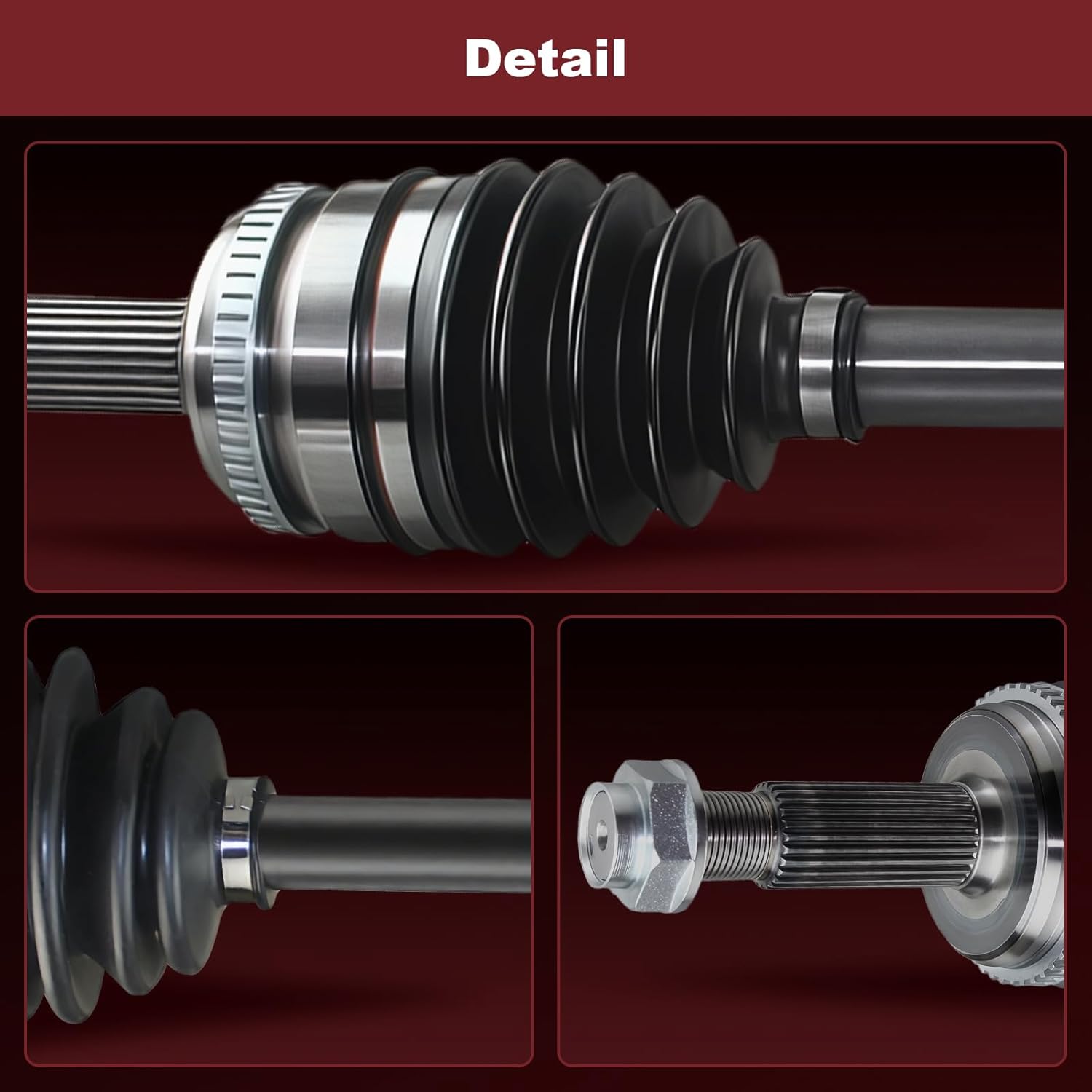 | Special Features | 1 Year Warranty, Anytek CV Axle Shaft Assembly is manufactured strictly according to the original standard., Axle Shaft can be installed directly. CV Axle is made of high-quality materials to ensure optimal performance. High quality chloroprene rubber boots that can withstand extreme high and low temperatures., ① Installation Position: Front Right, Front Passenger; ② Compressed Length: 977 mm ; ③ Inboard Spline Quantity: 24; ④ Outboard Spline Quantity: 26; ⑤ ABS Ring Tooth Count: 48; ⑥ Axle Nut Locking Type: Stake |
