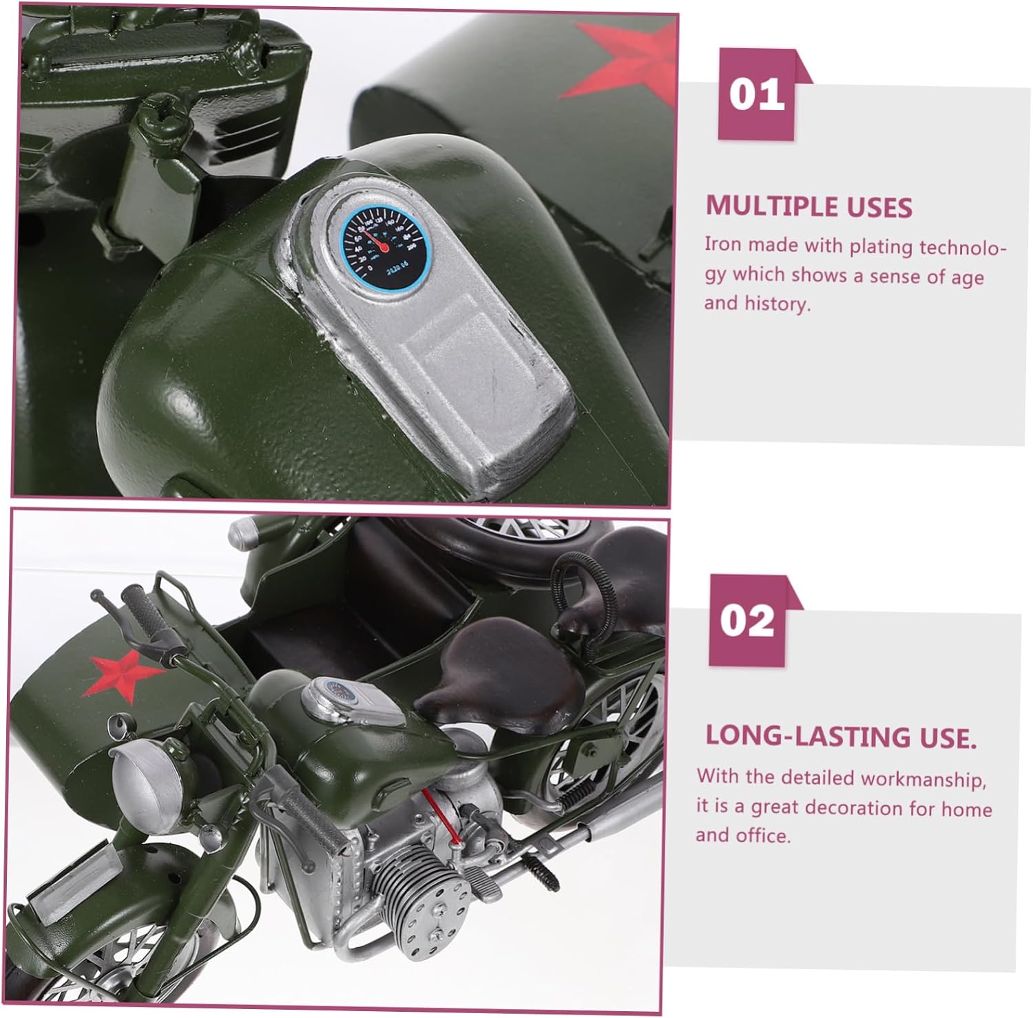 Package Include 1 x motor model Characteristics - Color: Green antique car model. - Material: Iron iron car model. - Size: About 32x25x15cm classic motor model. - Unique vintage looking bring you back to old days retro motor model. - After more than a dozen processes grinding, it has workmanship antique vehicle model. - Iron made with plating technology which shows a sense of age and history. - It's also a nice home decoration and for . - With the detailed workmanship, it is a great decoration for home and office.Goods Informationantique car model This iron vintage motor model home furnishing will give you much more joy if you are a model car lover.retro motor model This retro tricycle is so special that you can use it as a or decoration as well! How funny! Unique vintage looking bring you back to old days