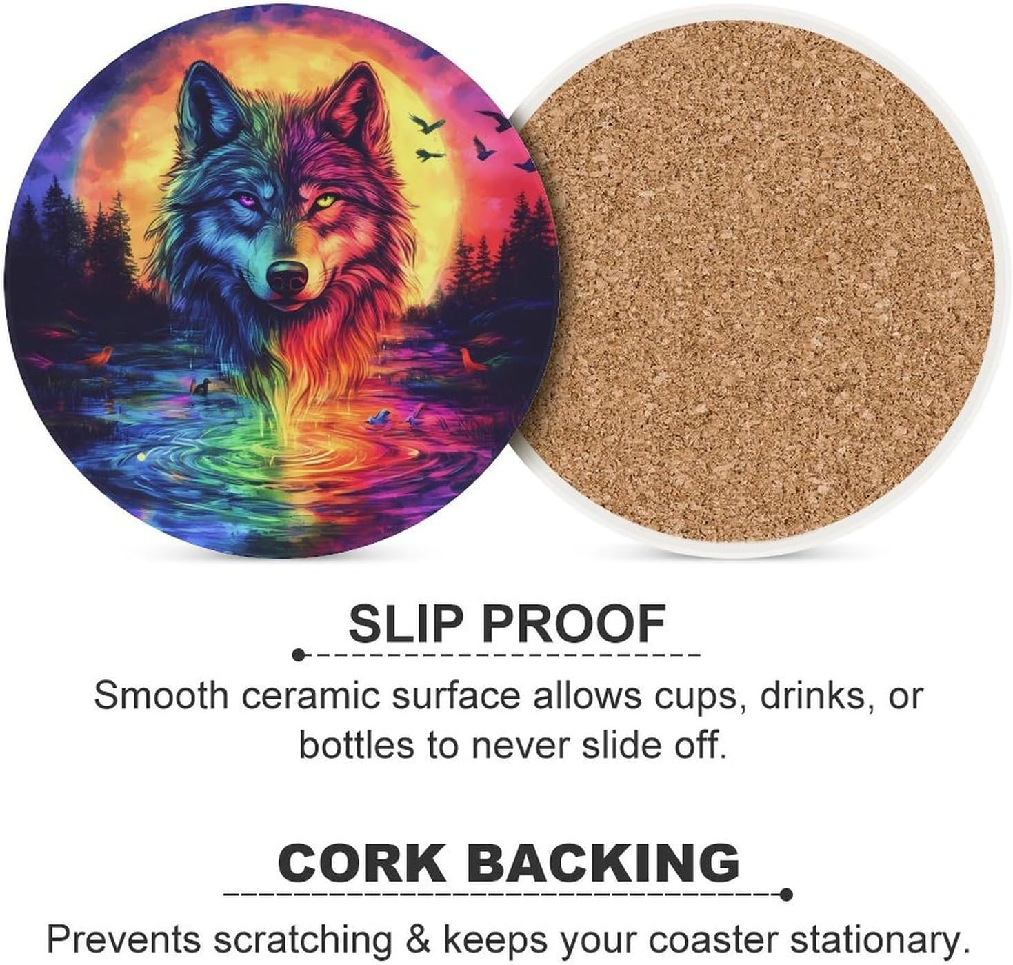 Cute Printed Round Drinks Absorbent Ceramic Coaster with Cork Base Suitable for Kinds of Mugs, Cups, Prevent Tabletop Wear And Scratches, and is Easy to Clean