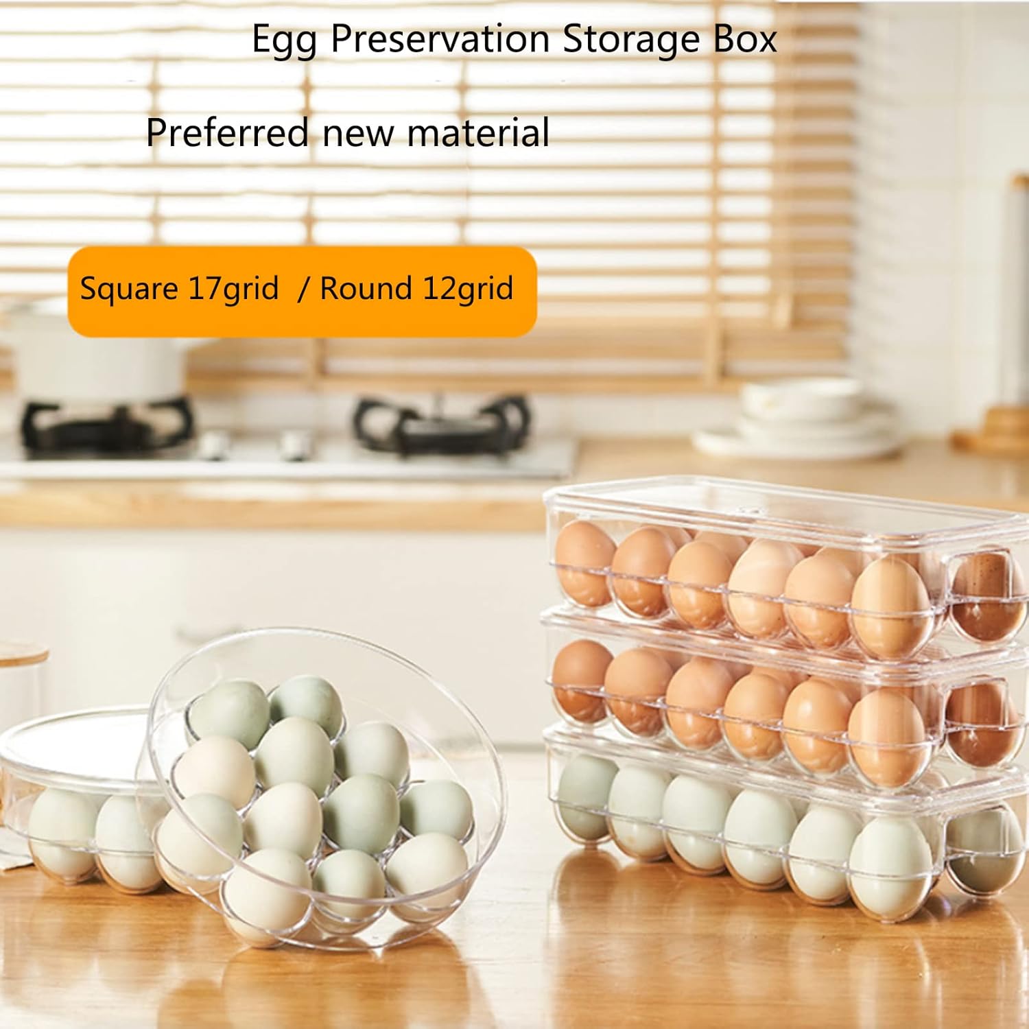 class="a-text-bold">The Lidded Design In This Egg Storage Box Keeps Eggs Safe And Fresh,And Also Makes It Quick And Easy To See When Supplies Are Running Low.The l Stackable Design Helps Maximize Your Space,Making The Most Of It And Keeping Items Organized And Easy To Find. Product Category:Food Storage Box Material:Plastic Specific Material:PS (Polystyrene) Proportion Of New Plastic Materials:100% New Materials Commodity Features:Covered,Can Be Superimposed,With Compartments Function:Cold Storage Features:Independent Storage Storage Scene:Dining Room,Kitchen Application Range:Eggs,Duck Eggs Style:Japanese Pattern:Transparent Size:Round 12 Grid:21.6x7cm (8.5x2.75inch) Square:17 Grids:30x14x7cm (11.8x5.5x2.75inch)