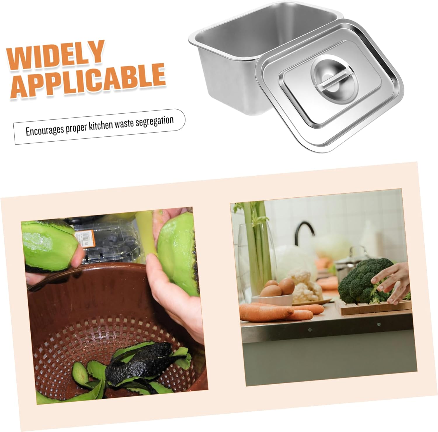 Package Include 1 x Storage basin 1 x Lid Characteristics -Optimal capacity: with a moderate capacity, this kitchen compost bin is ideal for daily use, holding enough food scraps without taking up too much space compost kitchen bin -Firm material: crafted from stainless steel, this compost bin is built to last, ensuring longterm use without damage kitchen compost bin -Color:Silver composting bin kitchen -Material:Stainless steel composter kitchen counter -Promotes waste segregation: encourages proper kitchen waste segregation, helping you to manage and reduce your household waste more efficiently composter indoor -Lid design: the bin comes with a secure lid that contains food scraps, preventing odors and keeping your kitchen clean and fresh food composter for kitchen -Countertop convenience: designed to sit on your kitchen countertop, this compost bin is easily accessible, making it simple to dispose of food waste while cooking counter compost bin with lid -Size:32.00X22.00X15.00cm/12.58X8.65X5.89in countertop compost binGoods Informationdesktop trash can Its sleek design allows it complements any kitchen decor while keeping unpleasant smells at bay.small compost bin for kitchen Simply lift the lid, deposit your food waste, and close it to maintain a clean and organized kitchen environment.compost pail The stainless steel compost bin with lid is an essential addition to any kitchen.compost bin kitchen counter ideal for collecting food scraps and waste, this bin fits seamlessly on your countertop