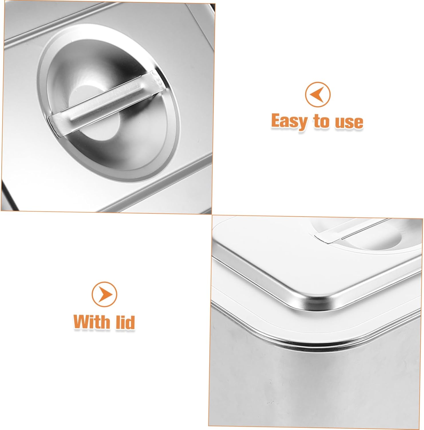 Package List 1 x Storage basin 1 x Lid Features -Smell control: the tight fitting lid helps to trap smell inside the bin, keeping your kitchen smelling fresh and from unpleasant smells indoor compost bins -Great : by using this compost kitchen bin, you contribute to reducing landfill waste and practices in your home compost kitchen bin -Color:Silver food scrap bin -Stainless steel construction: crafted from stainless steel, this stainless steel composting bin is resistant to wear and tear, ensuring it remains a staple in your kitchen for years kitchen compost bin countertop -Material:Stainless steel compost bucket -Spacesaving design: its compact design allows it to fit neatly on your kitchen countertop, providing a convenient spot for collecting food scraps without cluttering your space compost bin for kitchen -Easy to clean: the smooth stainless steel surface is easy to clean, ensuring that your composting bin remains clean and ready for use at all times stainless steel compost bin -Size:32.00X22.00X15.00cm/12.58X8.65X5.89in indoor compost binGoods Descriptionkitchen storage bins with lids Place it on your kitchen counter or inside a cupboard to keep your food waste out of sight but easily accessible for composting.compost bin kitchen counter The lid helps to contain smells, making it ideal for indoor use.kitchen lid organizer This kitchen compost bin is designed for convenience and efficiency.small compost bin for kitchen crafted from stainless steel, it resists damage, ensuring long-lasting use