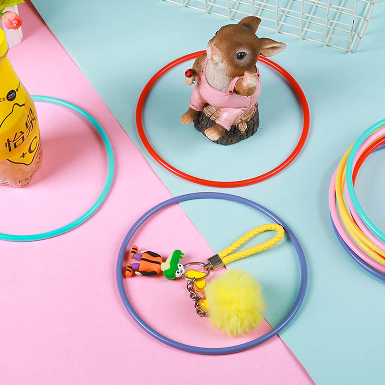 Wide Application: Suitable for indoor and outdoor party activities, toss activities. Can be used to DIY, such as ribbon dance props, dream catcher, wind catchers, ect. You can set up cones to throw rings. Once the weather gets warmer, you can intend to use them for a backyard obstacle course. Great for improving hand-eye coordination, precision and accuracy. You can reuse these a lot for party activities and future parties! Specifications: Material: plastic Color: random color Outer Diameter: 4.3in/11cm, 4.9in/12.5cm, 5.9in/15cm,7.8in/19.8cm, 9.4in/24cm Inner Diameter: 3.9in/9.8cm, 4.5in/11.4cm, 5.2in/13.1cm,7.3in/18.5cm,9in/22.8cm Thickness: 0.26inch/0.65cm Suitable for many things of different sizes. Package Includes: 5 Pcs 4.3'' Different Colors Toss Rings 5 Pcs 4.9'' Different Colors Toss Rings 5 Pcs 5.9'' Different Colors Toss Rings 3 Pcs 7.8'' Different Colors Toss Rings 3 Pcs 9.4'' Different Colors Toss Rings Note: 1. Please allow a little bit of size deviation due to manual measurement. 2. Due to light effects and display, please allow a little bit of color difference between picture and object.
