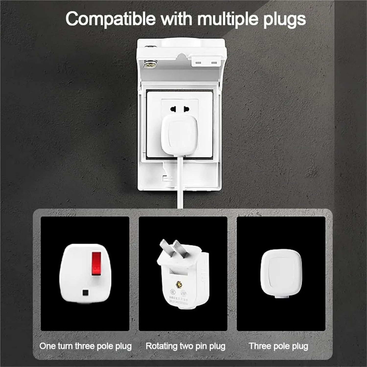Color:Transparent,Black,WhiteSize :as showMaterial:Plastic Type:86 Type Socket Waterproof BoxGood waterproof function, self-adhesive installation design, convenient and practical.Suitable for home, office, restaurant, hospital, school, etc.Installation Steps:1.Please clean the wall before pasting2.Tear off the protective layer and keep the waterproof sponge on the back close to the wall3.For best results, please paste it for 24 hours before opening and closing the waterproof box.Note:1. The real color of the item may be slightly different from the pictures shown on website caused by many factors such as brightness of your monitor and light brightness.2. Please allow slight manual measurement deviation for the data.