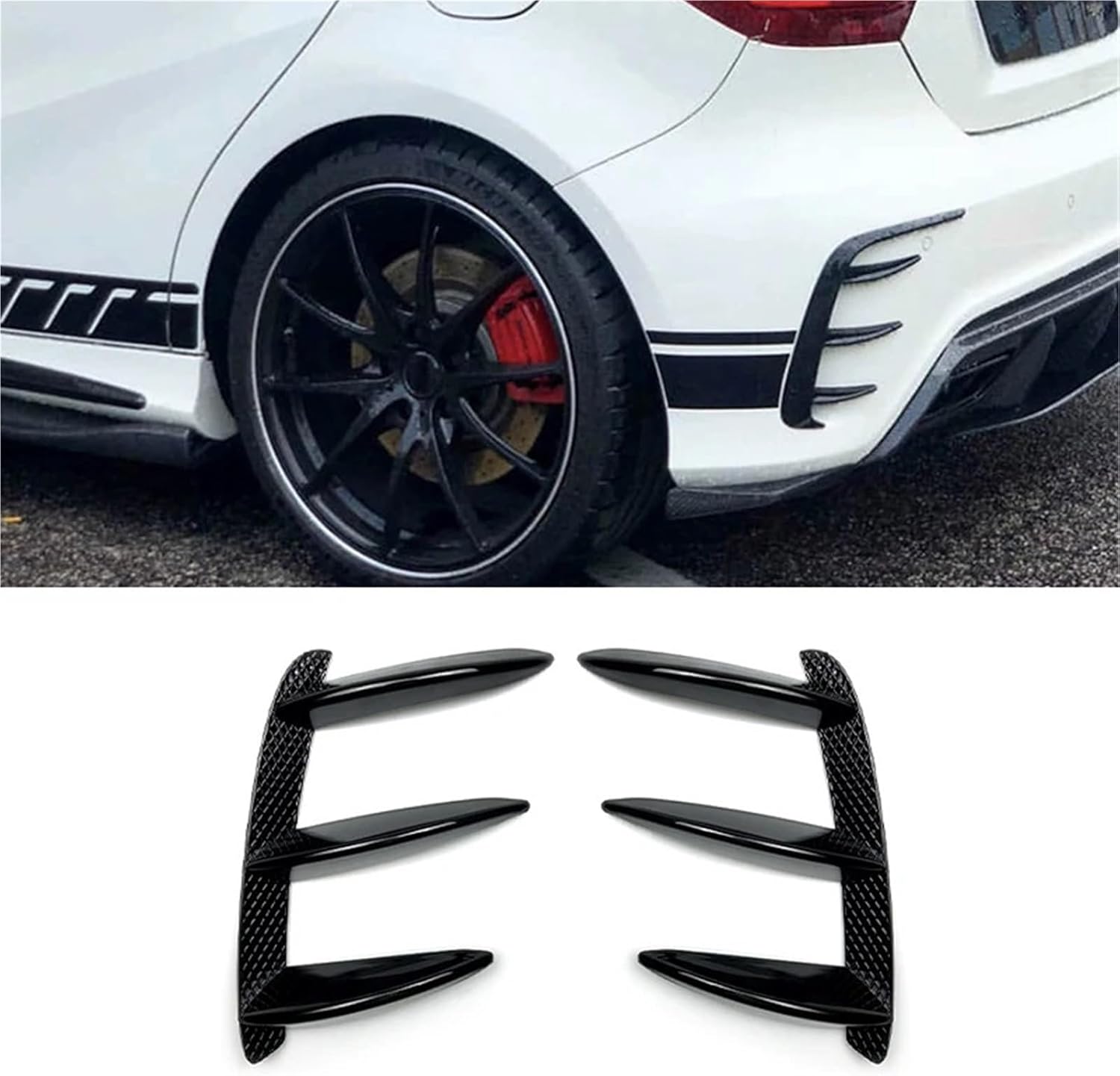 Please make sure you have the model and year of your vehicle before placing your order to avoid buying the wrong product!Specification:Compatible with Benz W176 A200 A250 A260 A45 AMG 2013-2018Type:Rear Bumper Spoiler Cover TrimPlacement on Vehicle:RearColour: Glossy black/Carbon look Material: ABS plasticPackage Contents:2pcsNote:The measurement allowed error is +/- 1-3cm.